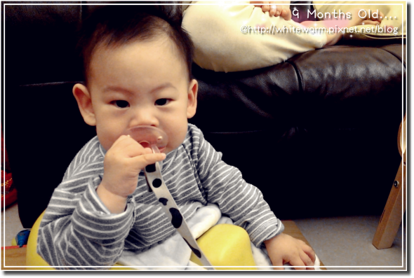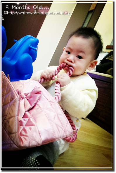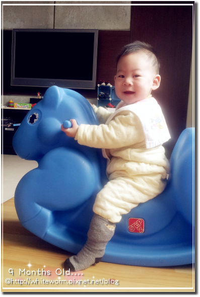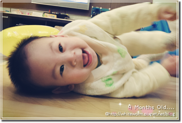 現在九個月,要趴或坐都很隨心所慾囉而且他變換姿勢的方法很有個人風格XD